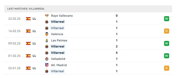 - Phong độ gần đây Villarreal