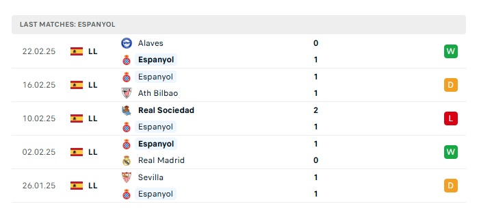 - Phong độ gần đây Espanyol