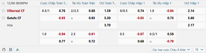 Soi kèo châu Á, kèo Villarreal vs Getafe
