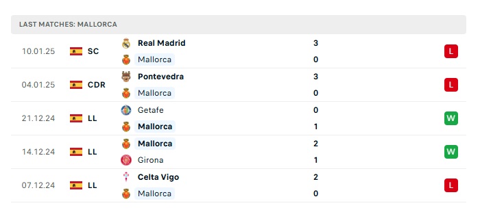 - Phong độ gần đây Mallorca