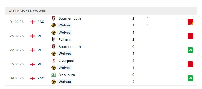 - Phong độ gần đây Wolves