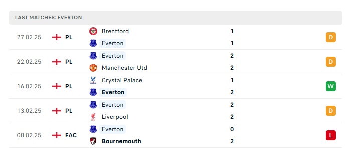- Phong độ gần đây Everton