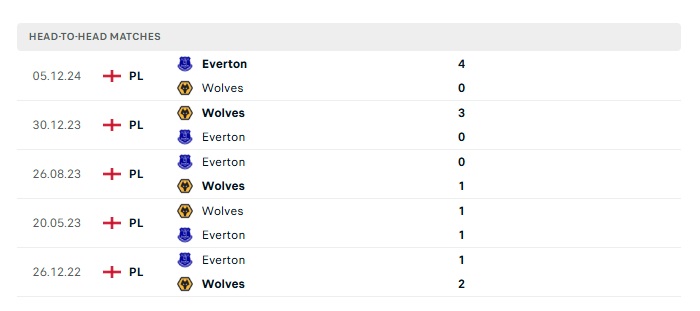 Lịch sử đối đầu Wolves vs Everton