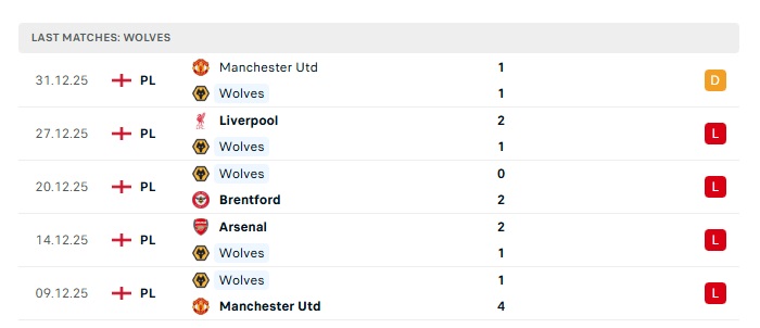 - Phong độ gần đây Wolves
